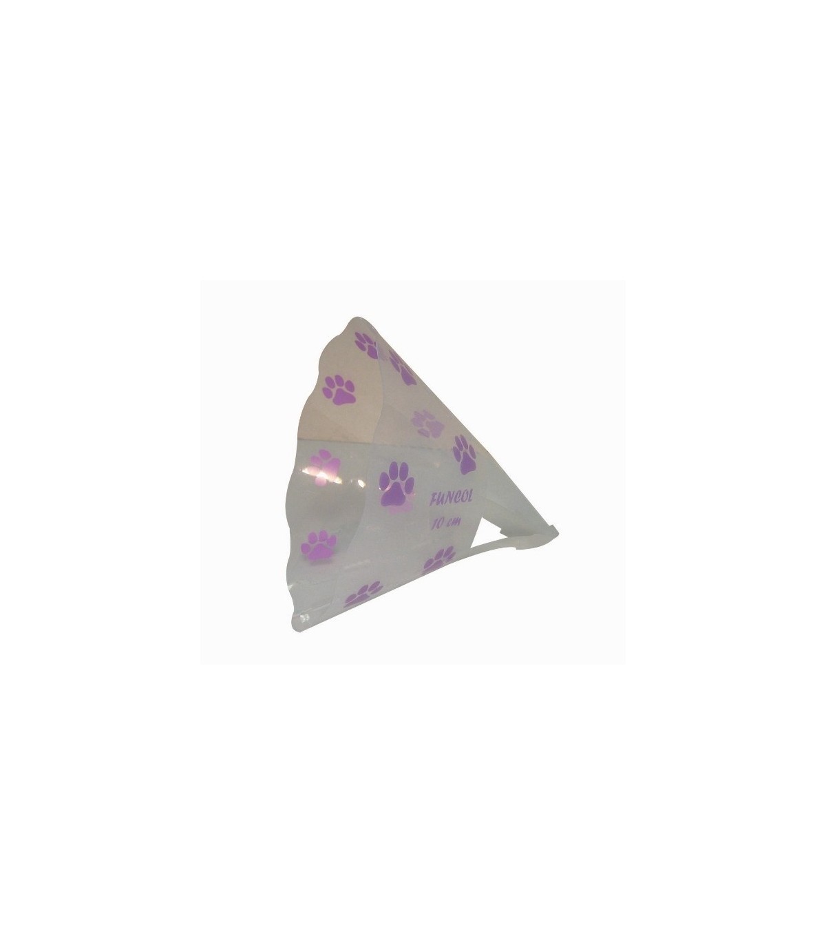 Collar que protege la cabeza, el abdomen y los miembros de que el animal alcance heridas abiertas o quirúrgicas con su hocico. Diseño con huellas de color. Fijaciones de fácil y rápido armado.