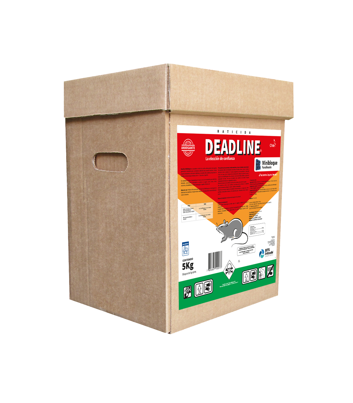 Rodenticida monodósico de segunda generación, formulado en un mayor porcentaje de parafina para el control de todas las especies de roedores de importancia en Salud Pública. Recomendado para condiciones ambientales lluviosas y de alta humedad.