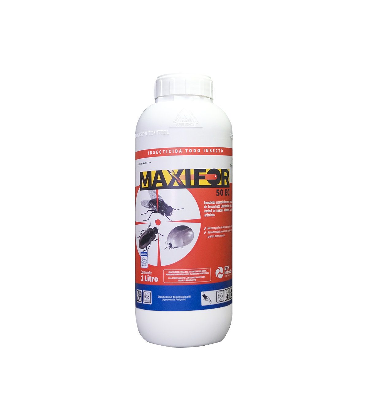 Insecticida organofosforado de ingrediente activo de Pirimifós Metil, especialmente formulado para el control de insectos rastreros, arácnidos y voladores, como gorgojos, garrapatas, pulgas, ente otros. Se recomienda su uso en aplicaciones de silos, galpones, bodegas e instalaciones en exteriores de viviendas. El uso de Maxifor 50 EC permite controlar también a los escolitos que dañan las maderas aserradas.