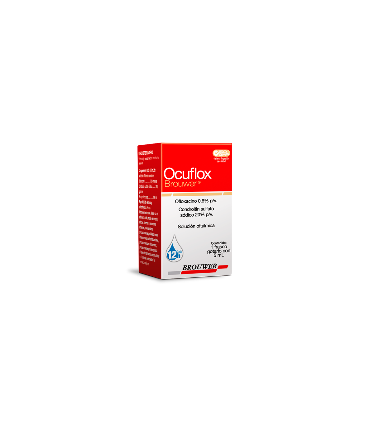 Ocuflox, es un colirio que contiene Ofloxacino, bactericida con acción contra bacterias gram (+) y (-) y Condroitin sulfato que favorece los procesos de cicatrización de la córnea y conjuntiva. Indicado para el tratamiento de infecciones generadas por bacterias sensibles al Ofloxacino, que afecten el segmento anterior del ojo, como por ejemplo, conjuntivitis, blefaritis, blefaroconjuntivitis y queratoconjuntivitis.