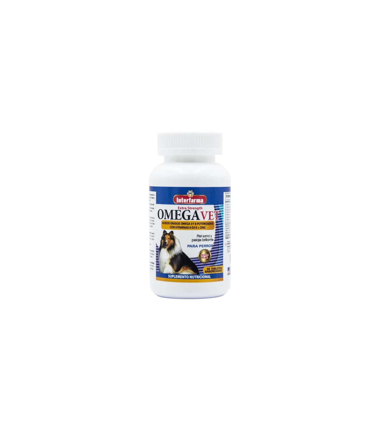El suplemento nutricional Omega Vet® provee de los ácidos grasos esenciales Omega 3 y Omega 6 además de vitaminas para un óptimo mantenimiento de la piel y pelaje. Proporciona Vitamina A, Vitamina D3, Vitamina E y Zinc los cuales promueven el crecimiento del pelaje, además de prevenir la piel seca y alergias.