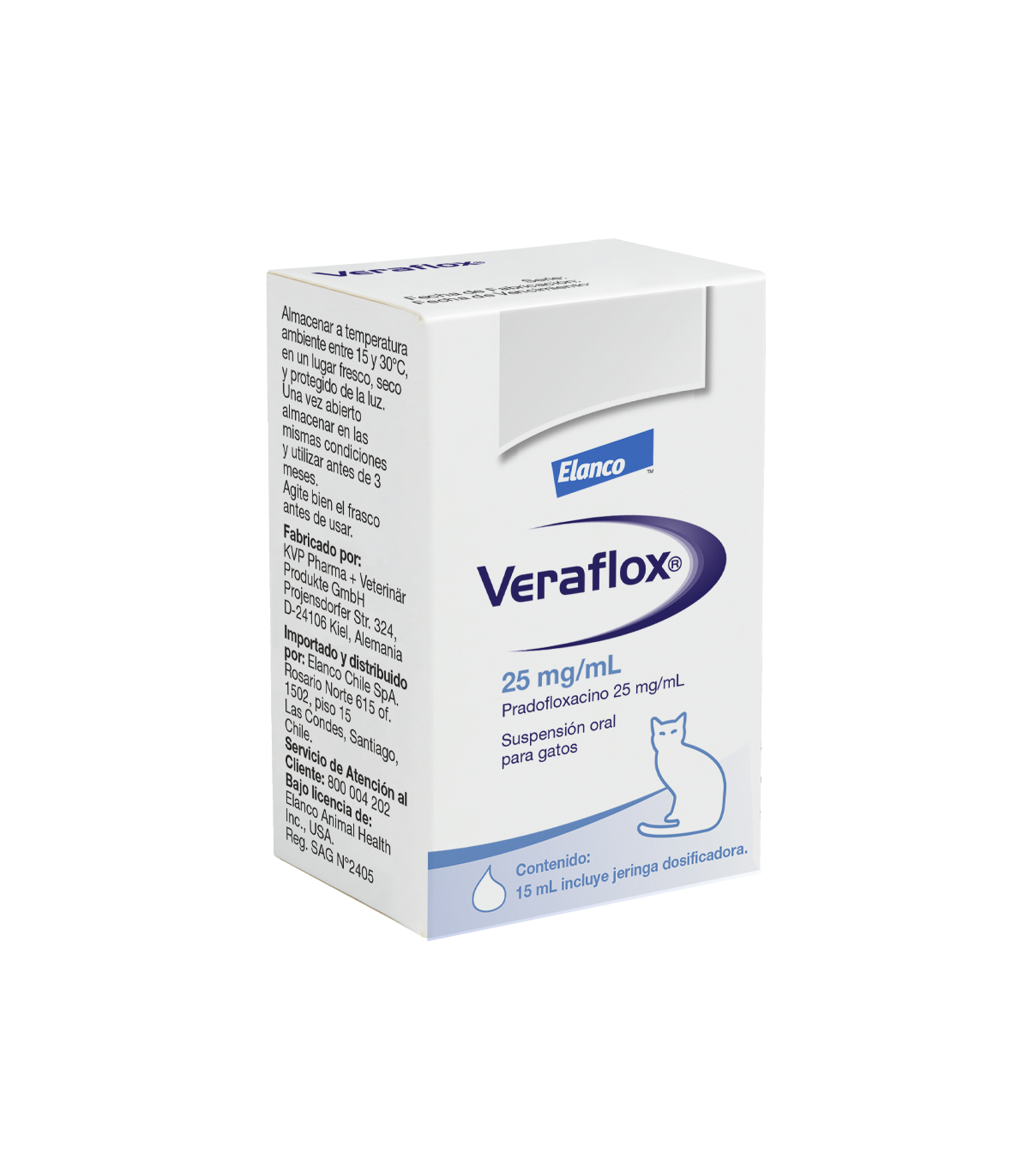 Veraflox, pradofloxacino es un antibacteriano de la clase de las fluoroquinolonas. Se une de manera reversible a las enzimas bacterianas ADN girasa o ADN topoisomerasa IV provocando la inhibición selectiva de estas enzimas y la muerte rápida de la célula bacteriana.