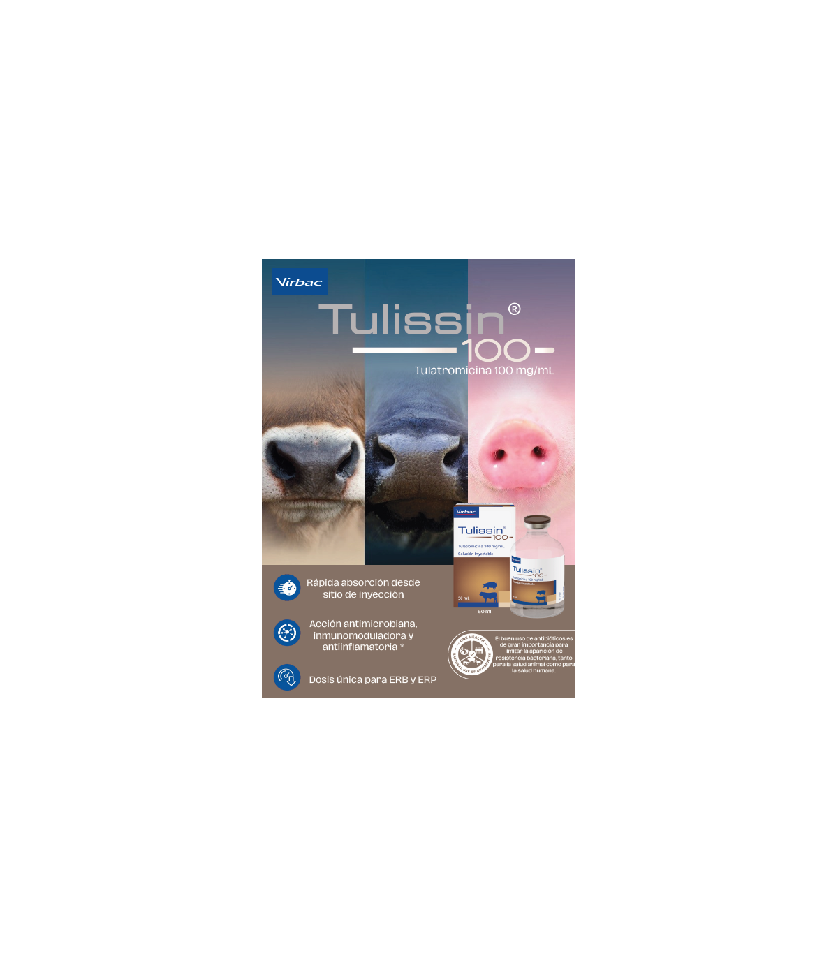 Bovinos: Administrar una dosis única de 2,5 mg de Tulatromicina / kg de peso (equivalente a 1 mL de Tulissin® 100 / 40 kg de