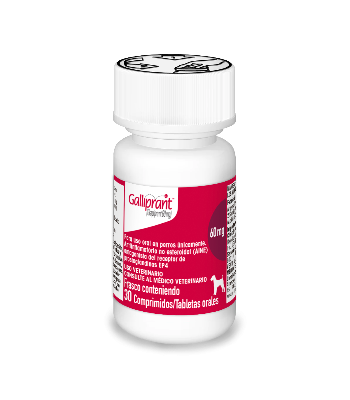 Galliprant 60 mg es indicado para el control del dolor y la inflación asociados a osteoartritis en perros.