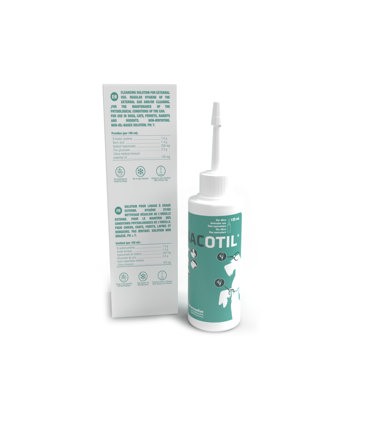 Realizar un ligero masaje en la base de la oreja para permitir la correcta distribución del producto. Si es necesario, posteriormente, limpiar el interior del pabellón con un algodón o gasa estéril.