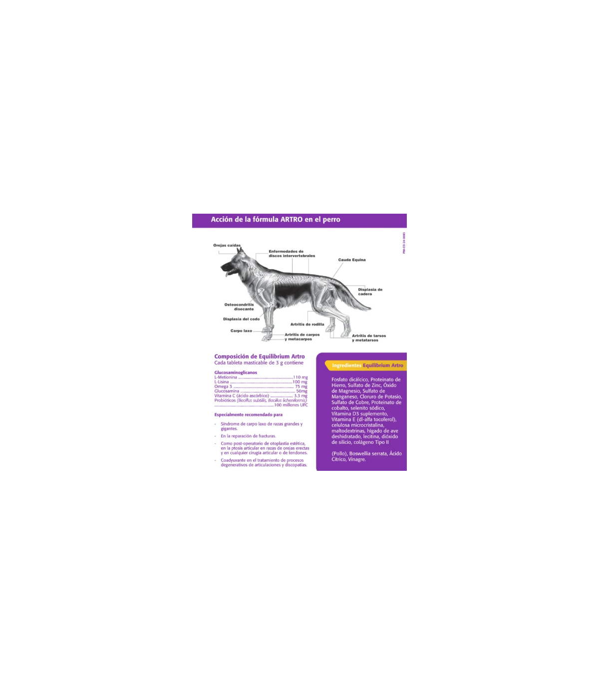 Suplemento en comprimido masticable para perros que favorece en la reparación de fracturas, elasticiedad e hidratación del cartílago, mayor vitalidad y calidad de vida.