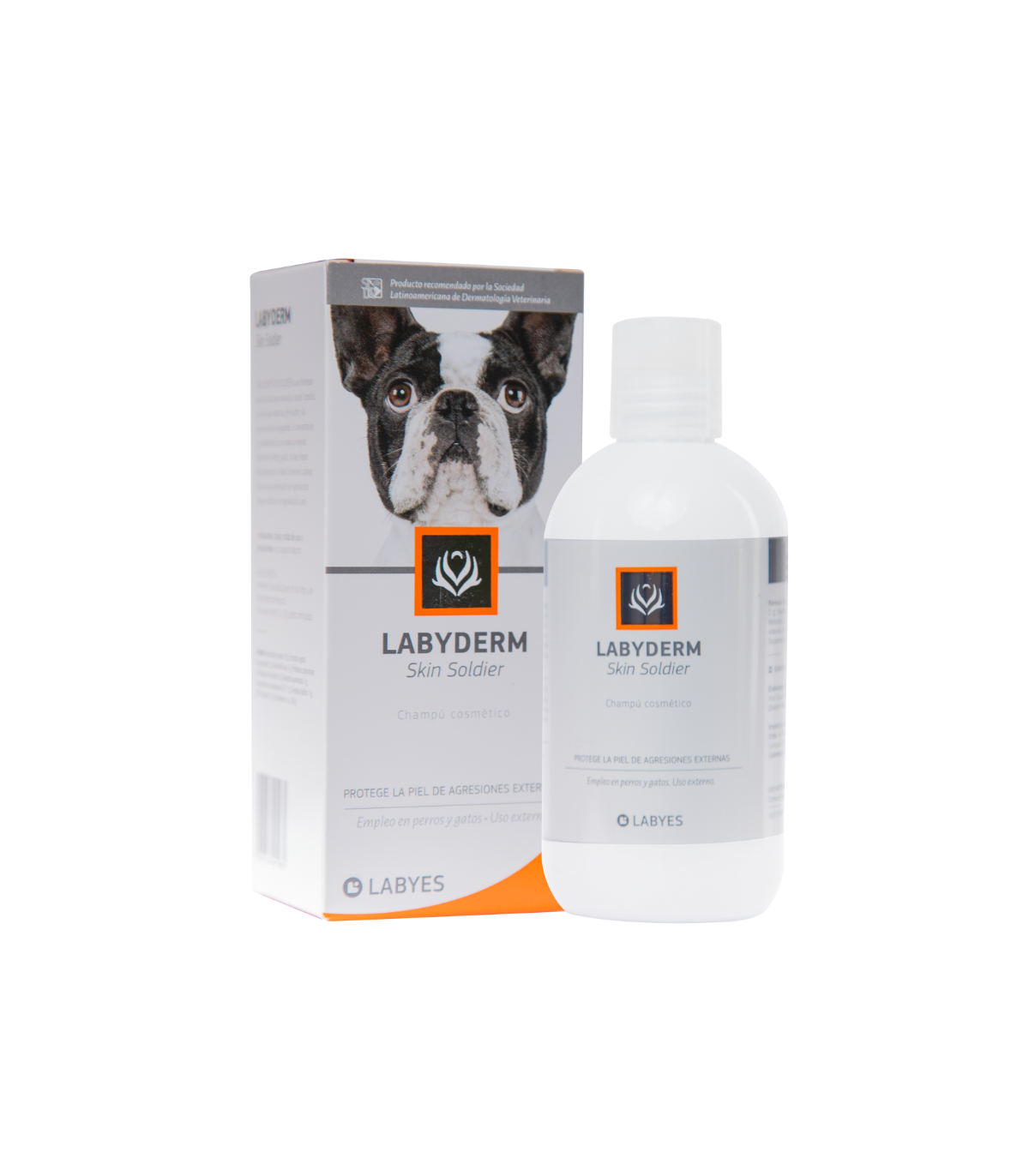 Indicado como coadyuvante en los tratamientos de diversas dermatopatías (sarnas, piodermias, dermatitis solar, dermatitis atópica, dermatofitosis, etc.), alternando Skin Soldier con el shampoo medicado, indicado según cada patología.