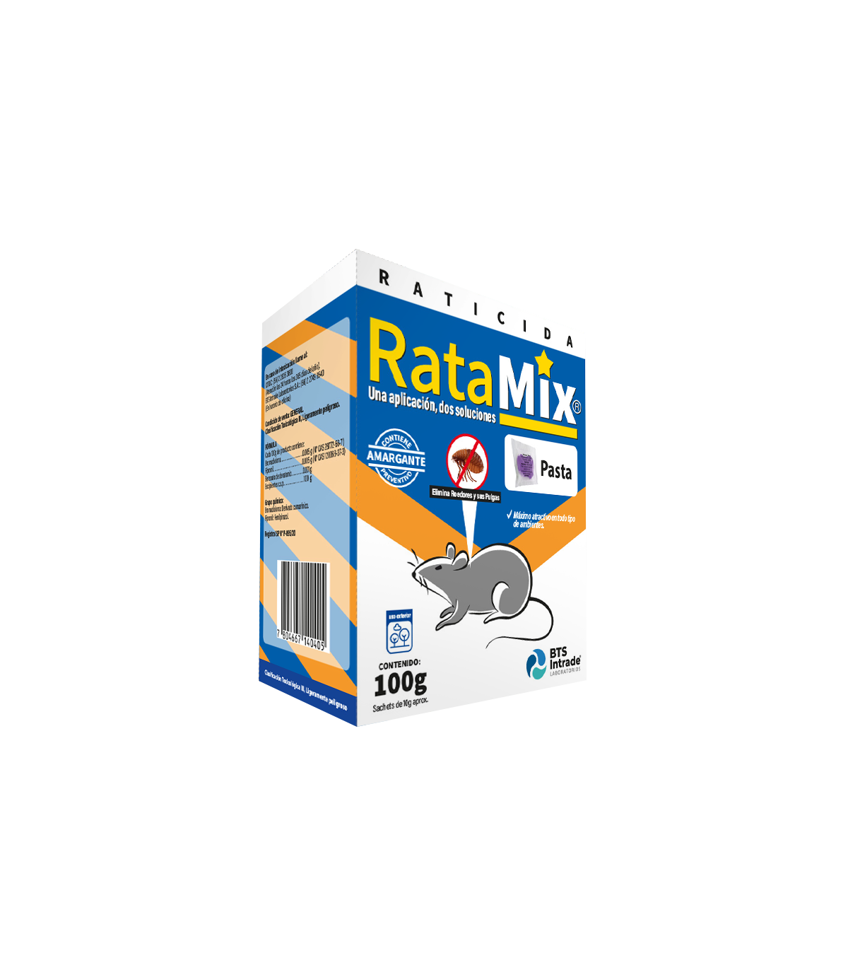 Único rodenticida en Chile que controla a los roedores y a los ectoparásitos presentes en ellos, como pulgas, garrapatas, piojos, entre otros. Gracias a su original formulación que posee un rodenticida (Bromadiolona) y un insecticida (Fipronil). Eliminando 2 vectores con una sola aplicación solucionando de manera eficiente estos problemas de Sanidad Ambiental. Formulado como pasta para lugares con poca presencia de agua y humedad.
