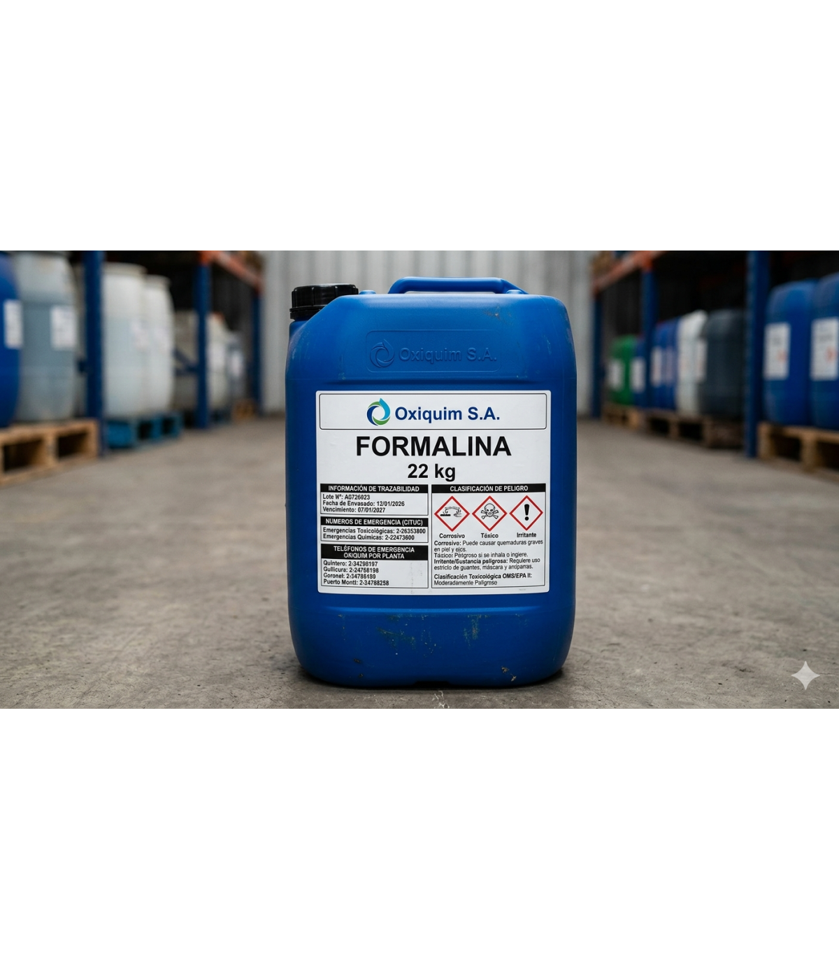 La Formalina de Oxiquim (comúnmente disponible en formatos industriales) es una solución acuosa de formaldehído, generalmente al 37%, utilizada principalmente como un potente desinfectante, germicida y conservante en diversos sectores productivos de Chile.